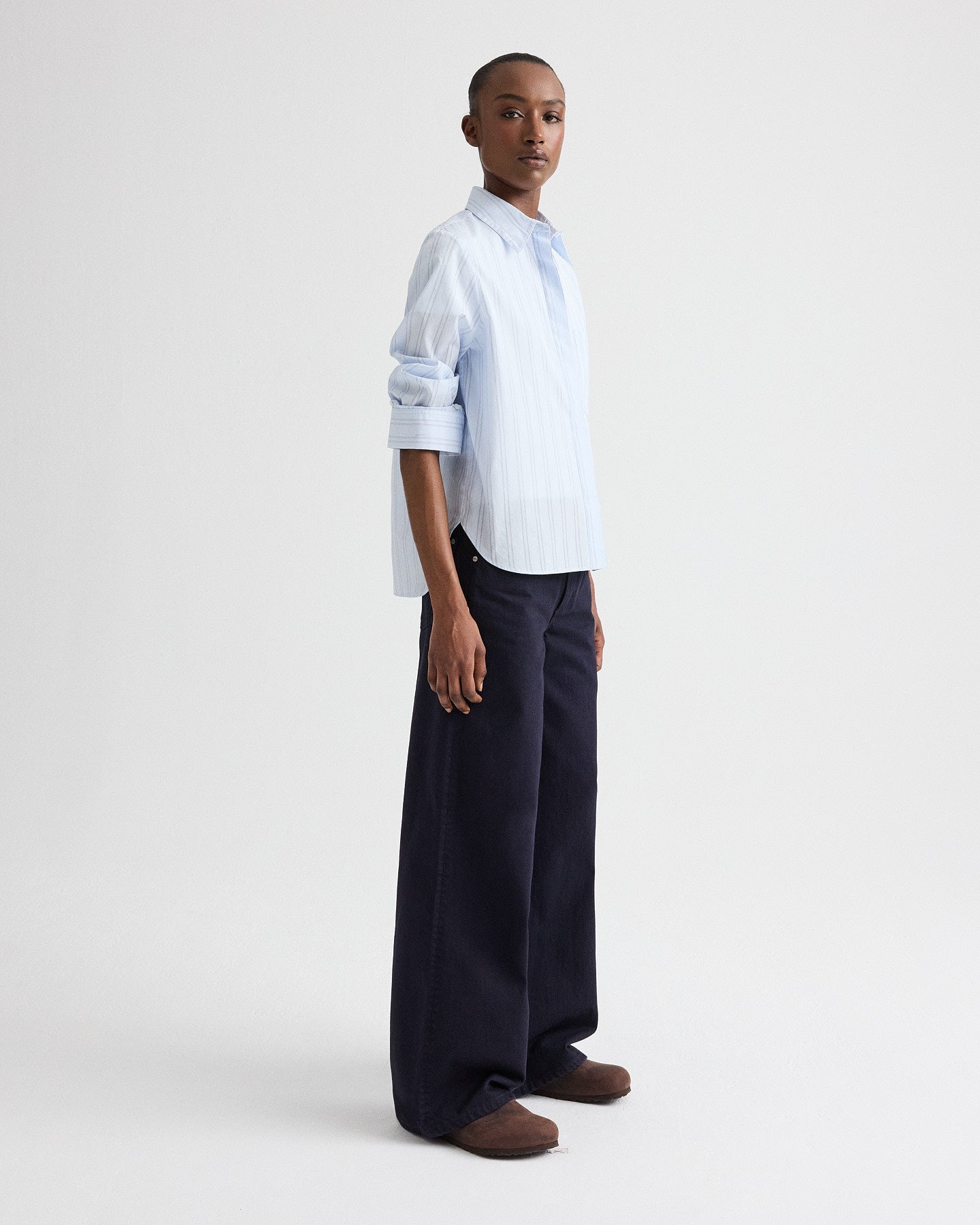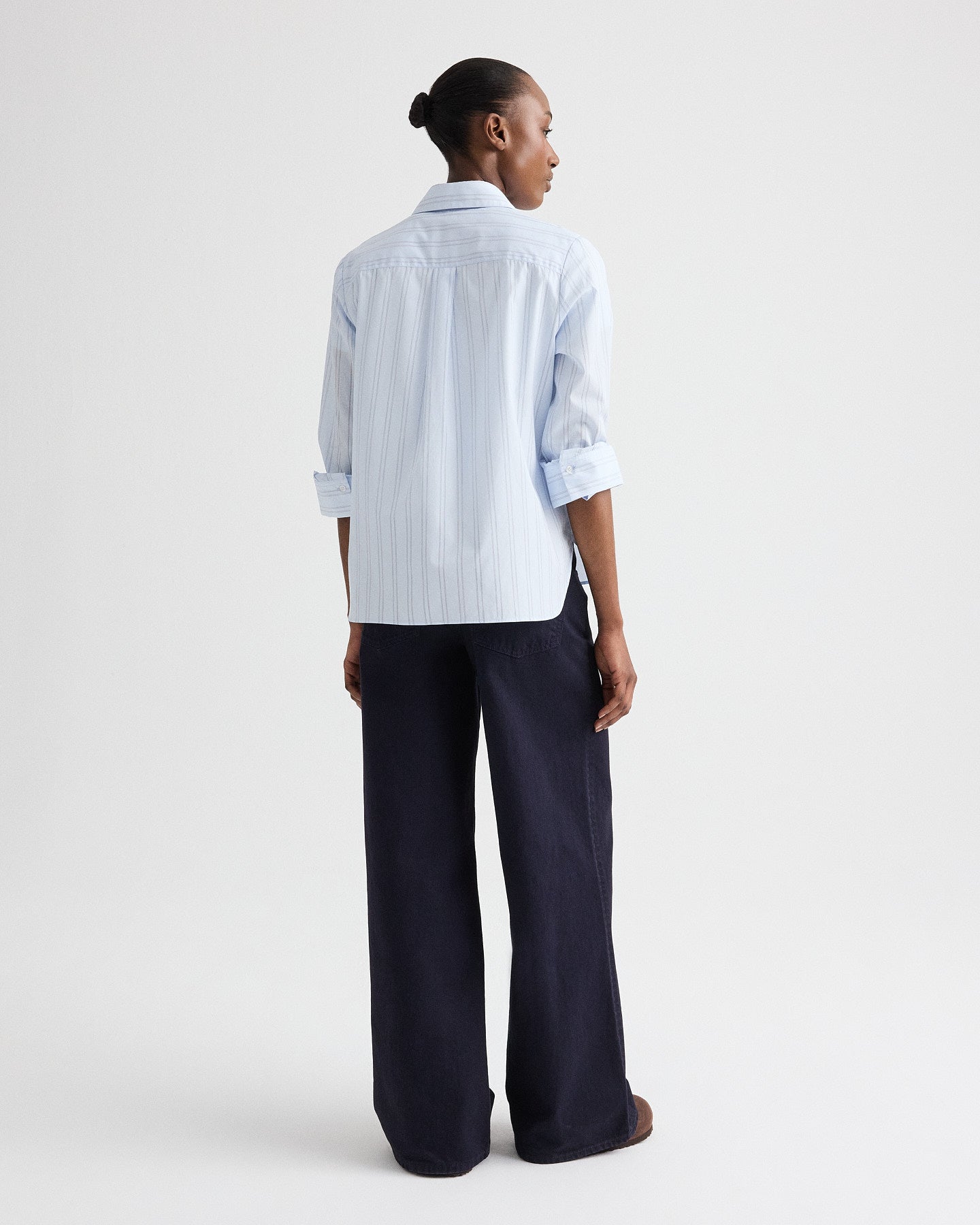 TWP’s signature button down crafted in superfine Italian cotton shirting. The Boyfriend is a relaxed fit complete with a chest patch pocket, concealed placket, curved hem, and staple single roll button cuffs.